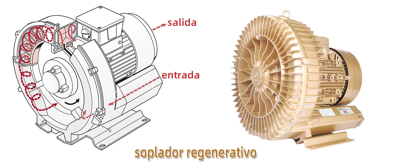 Un soplador regenerativo (también conocido como soplador de canal lateral o turbina de vórtice) es un dispositivo rotodinámico diseñado para generar aire o gases a presión y/o vacío para una amplia gama de aplicaciones industriales. Son conocidos por su funcionamiento silencioso, eficiencia y bajo mantenimiento.